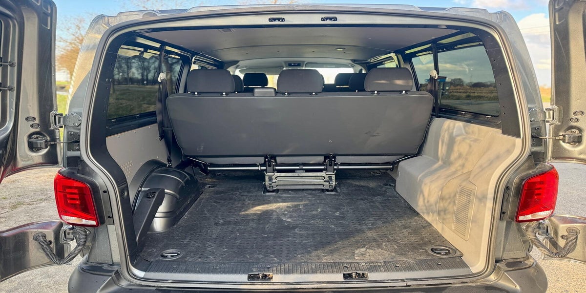 Ontdek onze Volkswagen T6 Transporter Minibus L2 die te huur is voor uw speciale gelegenheden.
